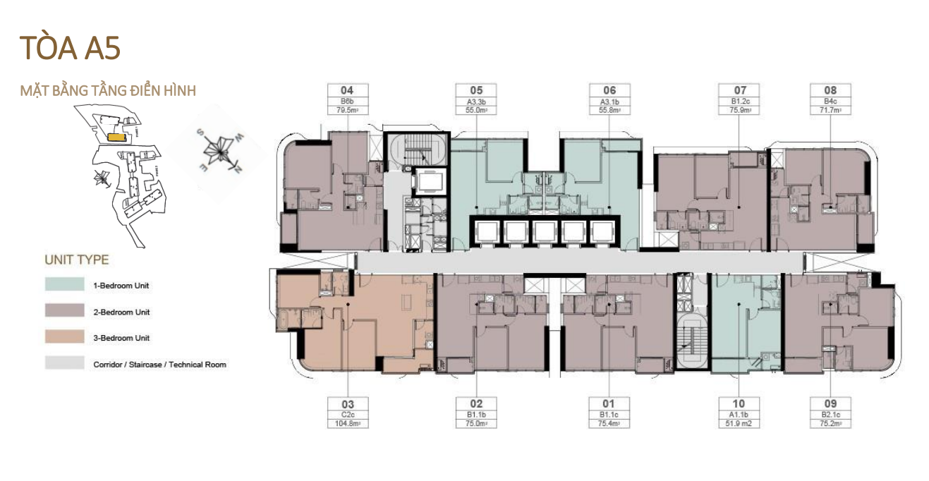 Số lượng căn hộ trên tầng điển hình của tòa tháp: 10 căn hộ |