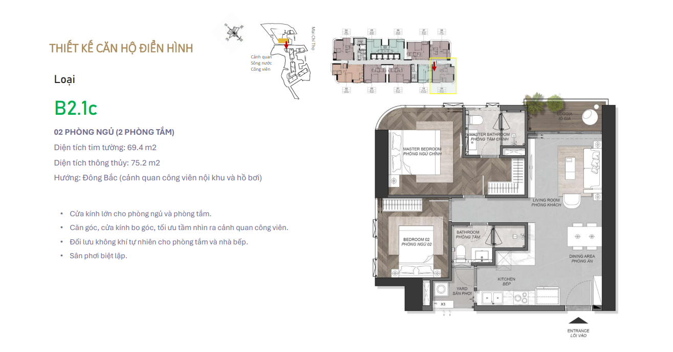 - Thiết kế đa dạng diện tích, 100% các căn chỉ có 1 tường chung và không bị “cửa đối cửa”.