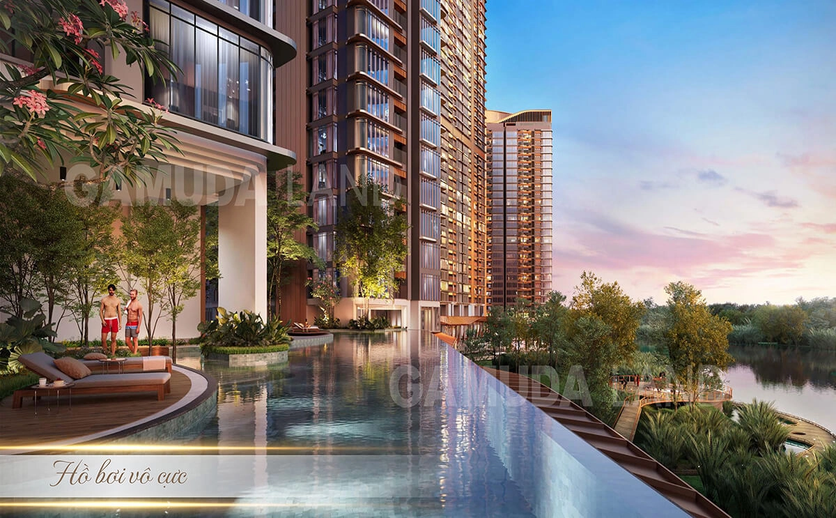 Hồ bơi vô cực: Đây là một hồ bơi đặc biệt với thiết kế vô cực, nước trong hồ sẽ liên tục nối liền nhau tạo ra một không gian vô hạn. Khi đến với hồ bơi vô cực cư dân không chỉ được ngâm mình dưới làn nước mát mẻ mà còn còn ngắm nhìn cảnh quan tuyệt đẹp của thiên nhiên sông nước.