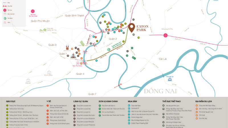Giữa lòng khu Đông năng động, Eaton Park hiện hữu như một “viên ngọc sáng” nơi giao thoa của các trục đường huyết mạch và trung tâm thịnh vượng mới của TP. Thủ Đức. Không chỉ kết nối dễ dàng đến mọi điểm đến quan trọng, dự án còn mang trong mình giá trị sống tinh hoa khi được bao bọc bởi cộng đồng cư dân quốc tế và những tiện ích hiện đại bậc nhất. Eaton Park vì thế không đơn thuần là nơi để ở, mà là tâm điểm phồn hoa, nơi khởi nguồn cho hành trình an cư trọn vẹn và đầu tư bền vững.