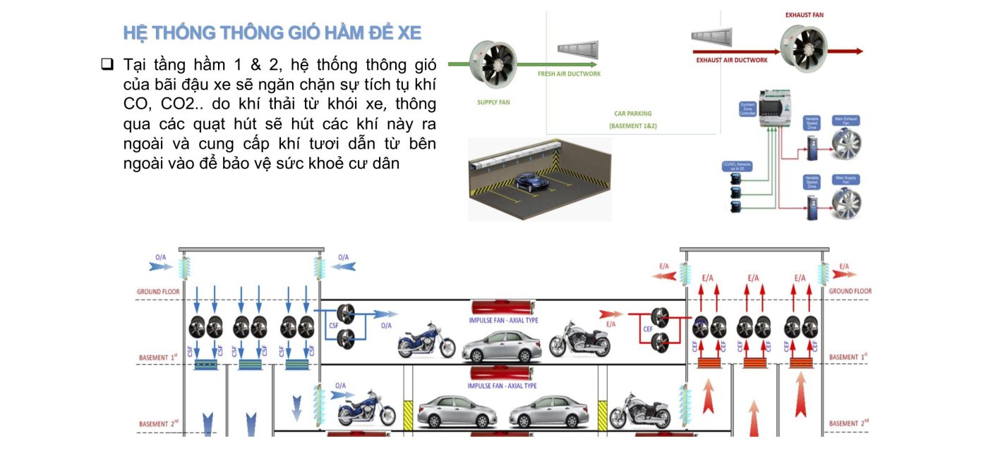 - Hệ thống thông gió hầm xe, hệ thống hút khói bãi xe: hỗ trợ PCCC