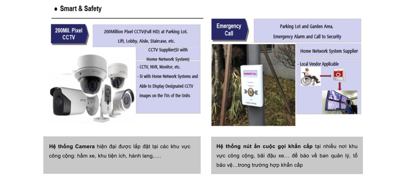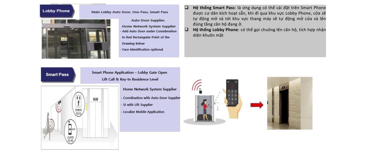 - Ứng dụng thông minh tại các khu vực công cộng: camera, gọi khẩn cấp, Lobby phone, Smart pass,…