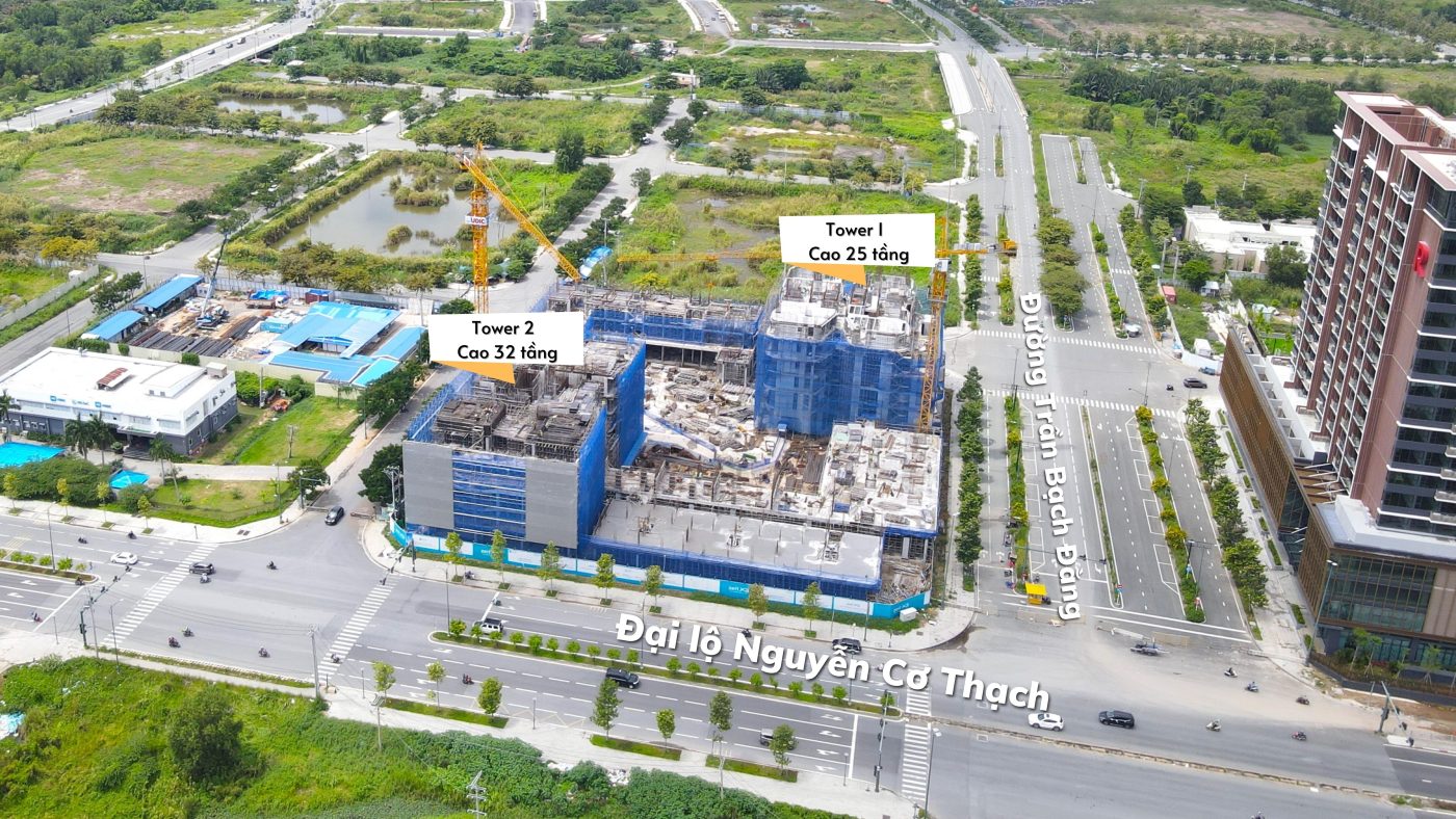 - Khu nhà ở gồm 2 tháp căn hộ cao cấp, tháp T1 cao 25 tầng và tháp T2 cao 32 tầng
