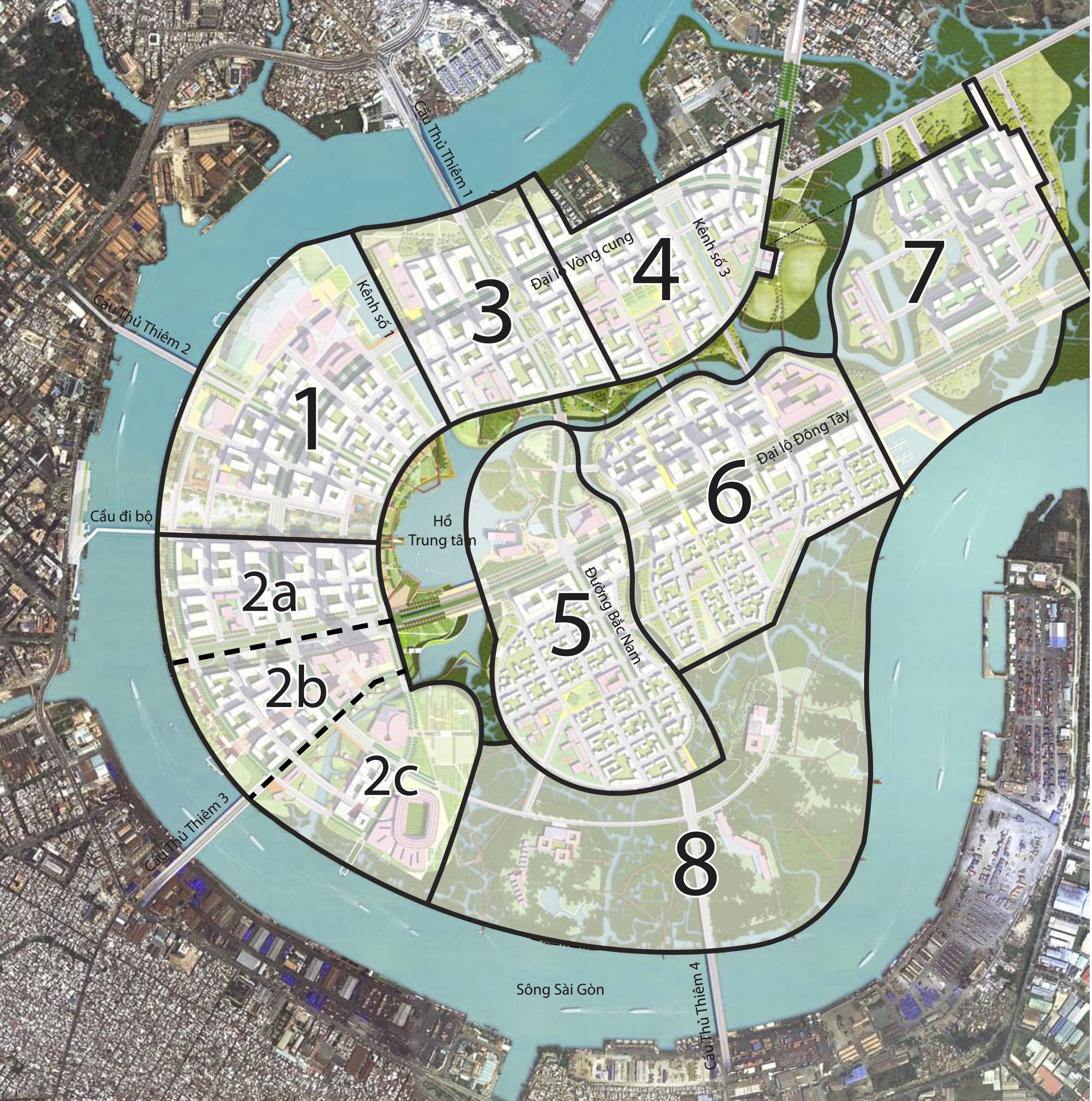 Bản đồ quy hoạch 8 phân khu chức năng khu đại đô thị Thủ Thiêm
